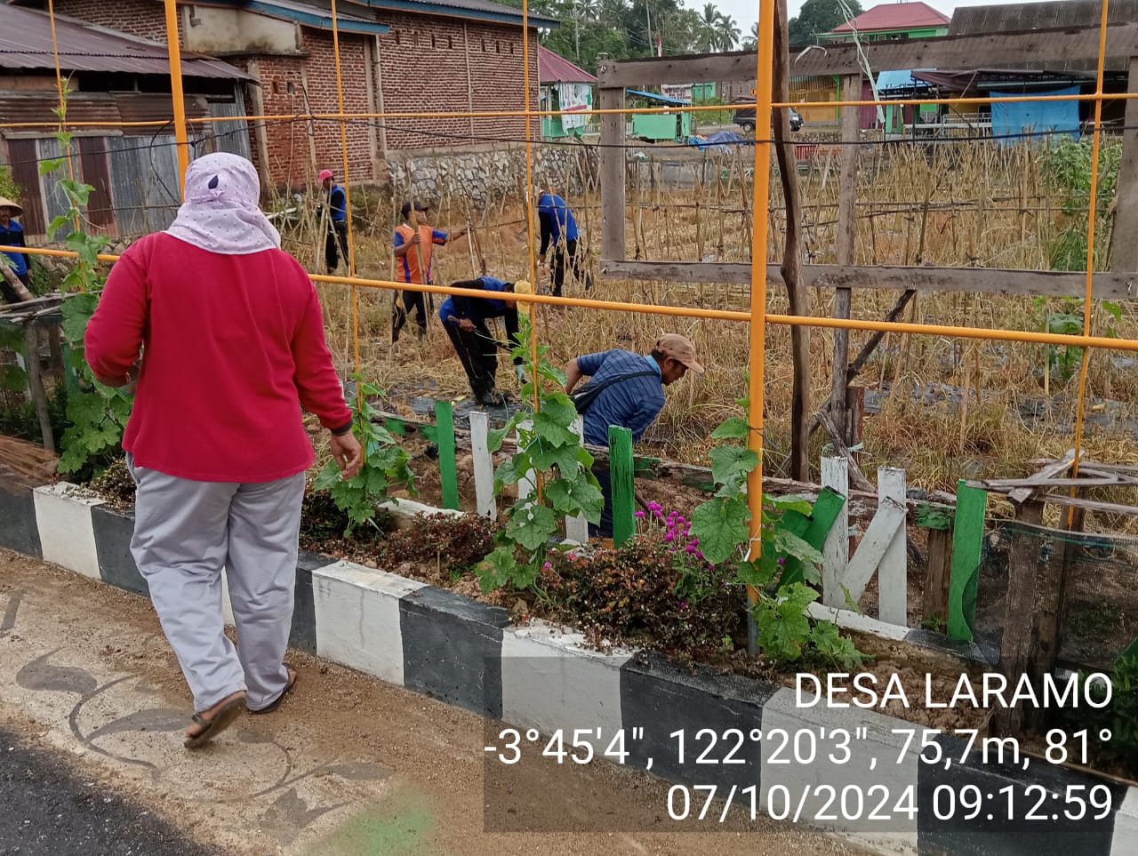 Kepala Desa Inovasi Laramo, Bapak Nurdin dan Aparat,Perangkat Desa bersama warga Laramo bergotong royong membersihkan sepanjang jalan lorong perkantoran Desa , kegiatan itu sekaligus membersihkan kebun Percepatan Penganekaragaman Konsumsi Pangan & ......